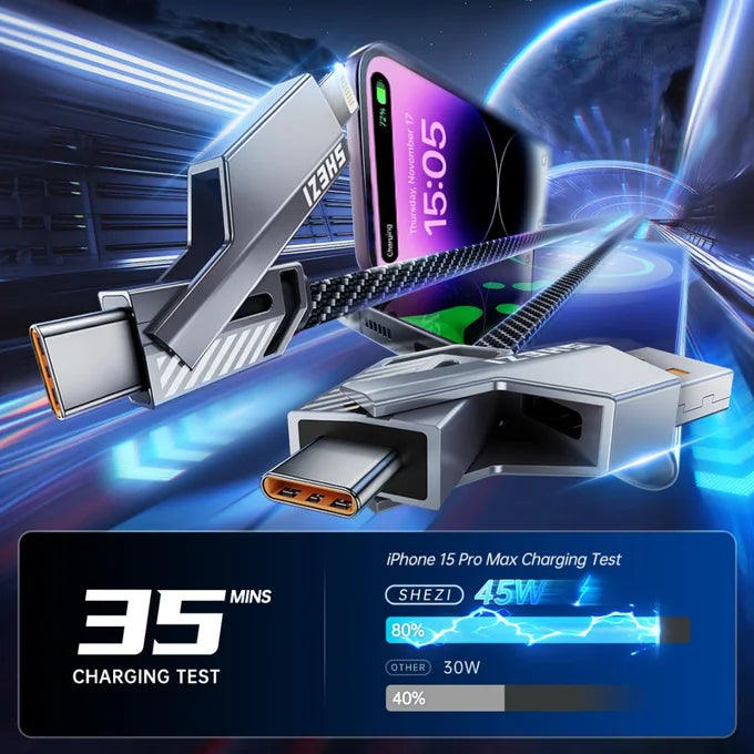 ⚡ كابل الشحن الخرافي 4×1 — وحش الأداء، قيمة أعلى من السعر، وراحة بالك بكيبل واحد